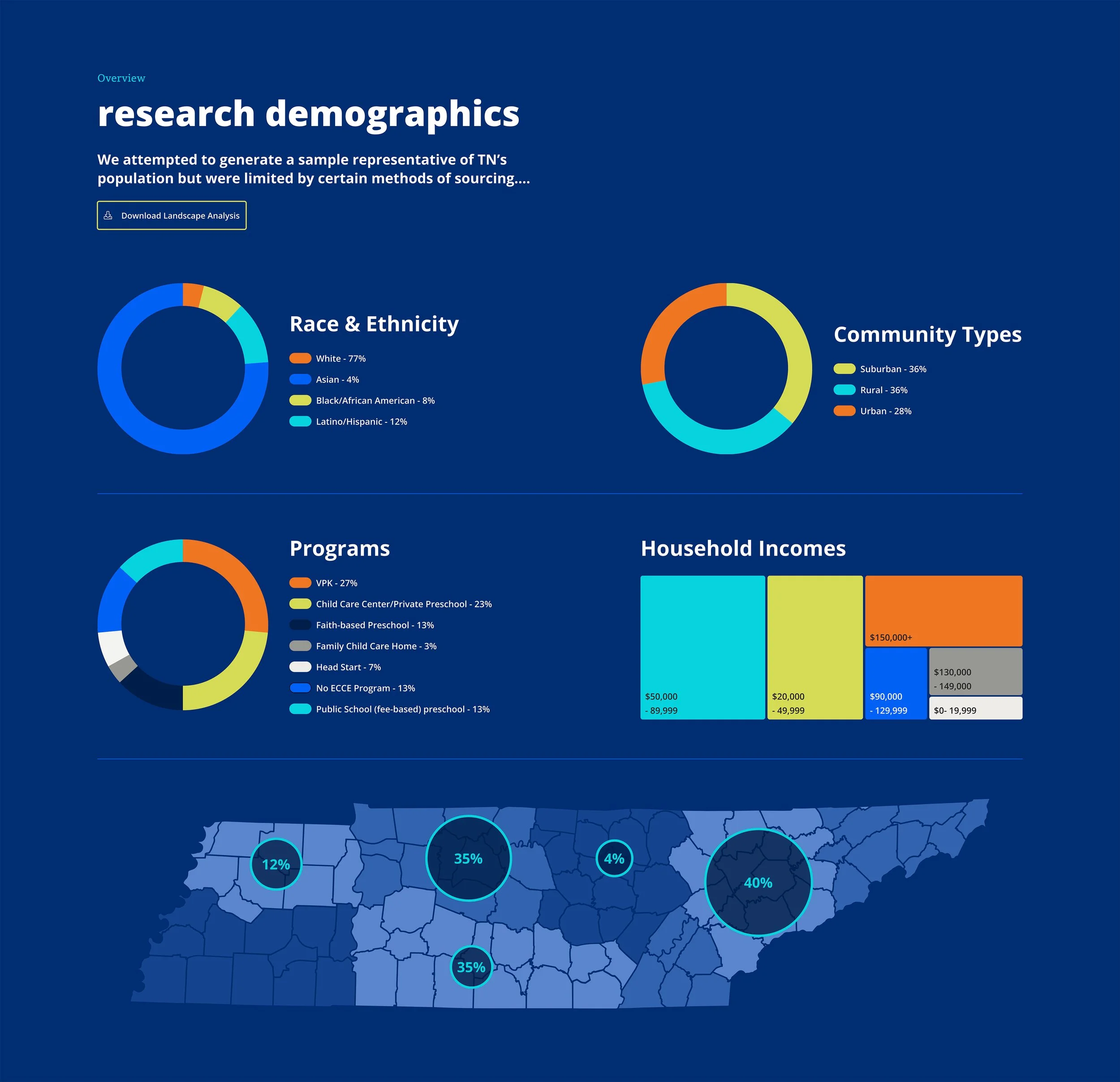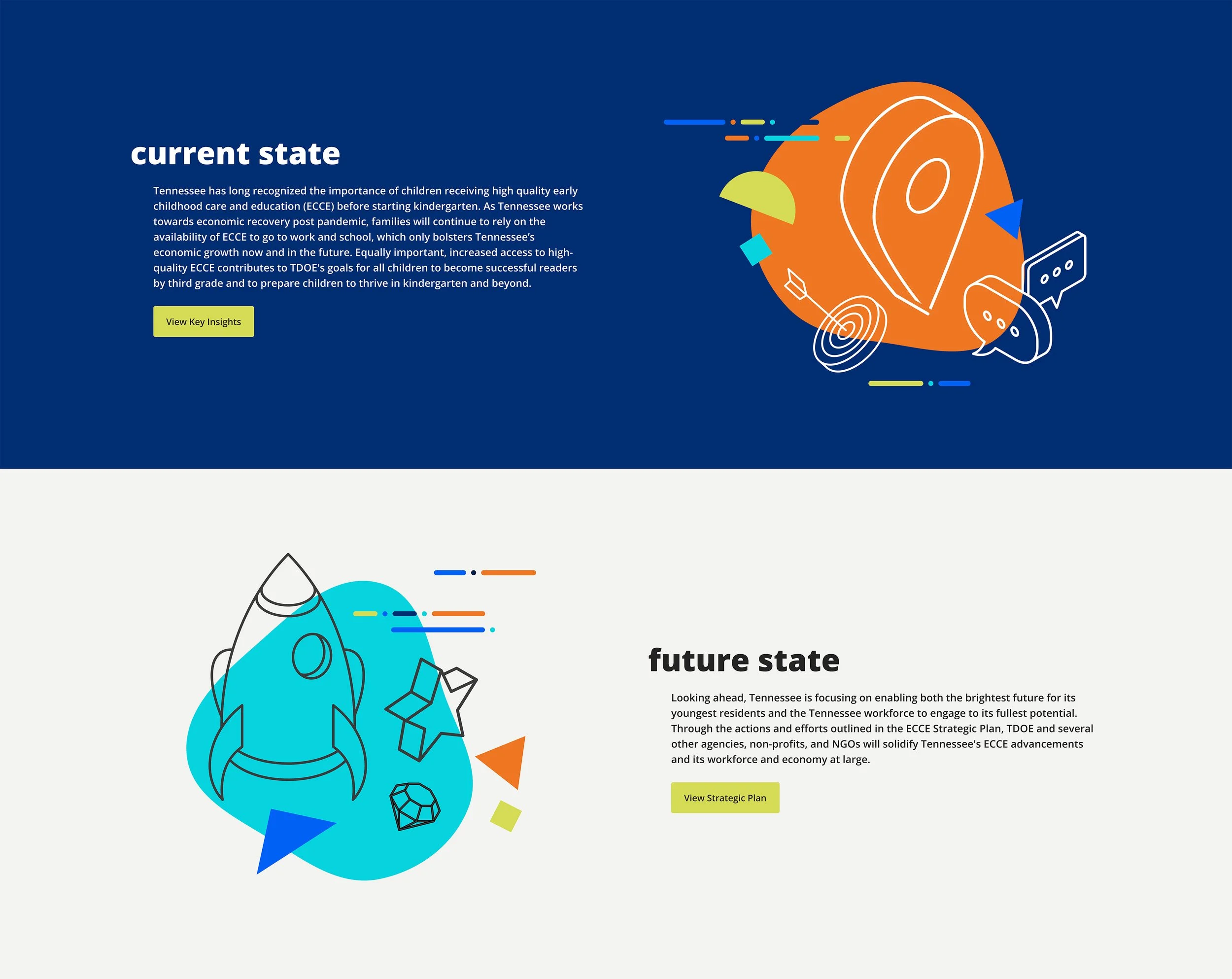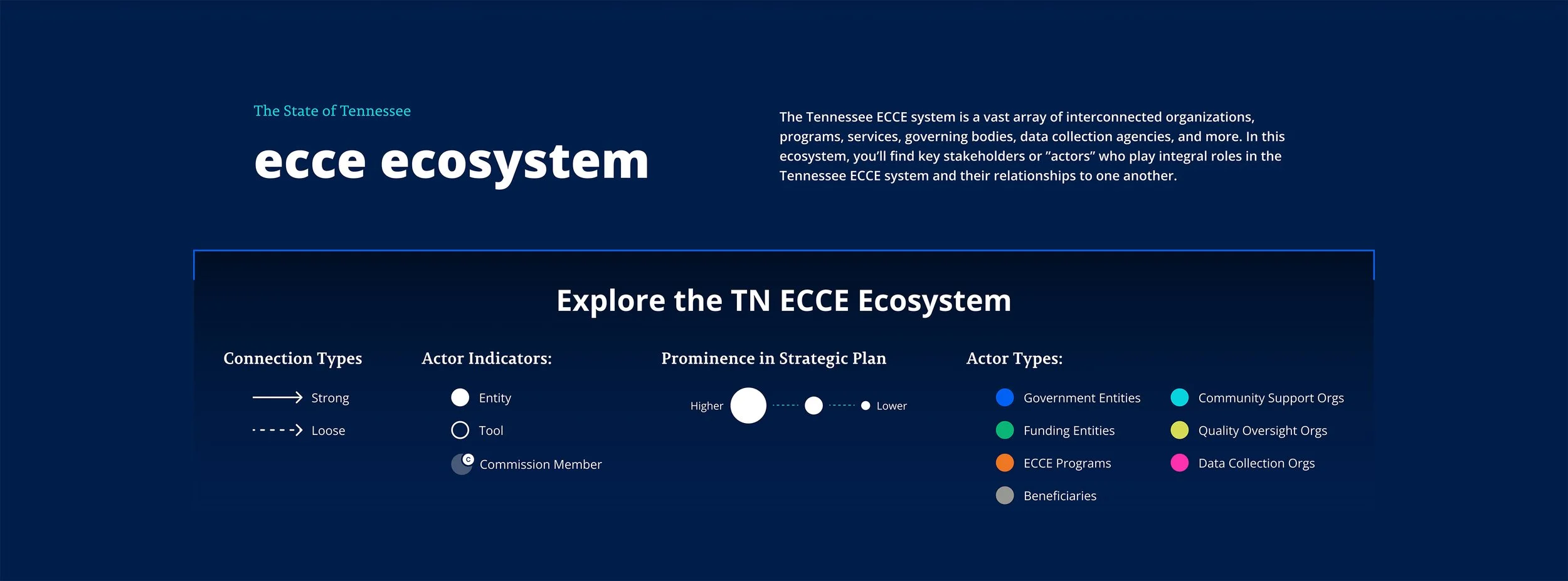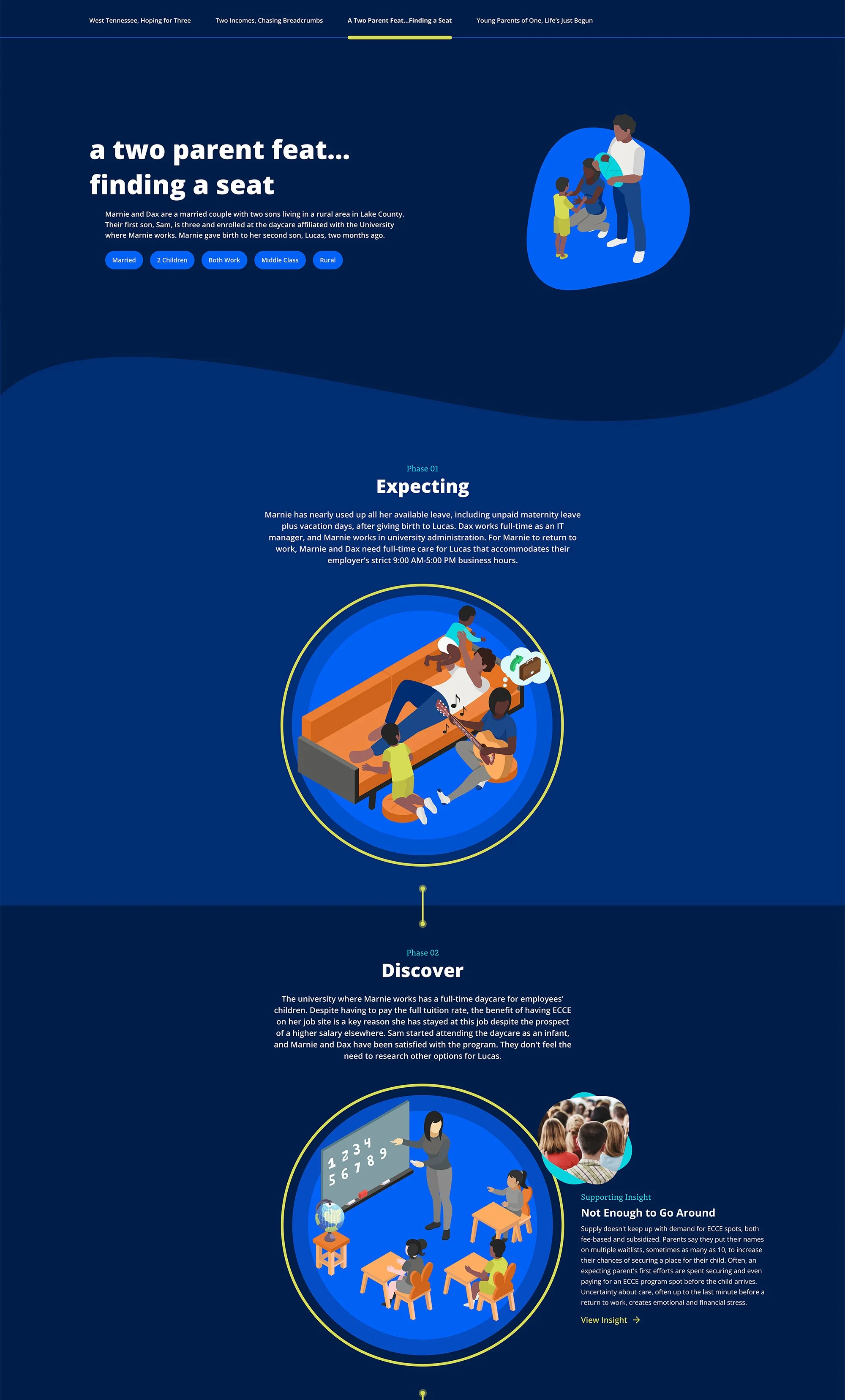 The leadership of Tennessee’s State Education Agency was looking for ways to better understand and improve the early childhood care and education systems within the state. This digital tool visualized and summarized 6 months of research, shown through user journey narratives and interactive digital mapping of infrastructure.